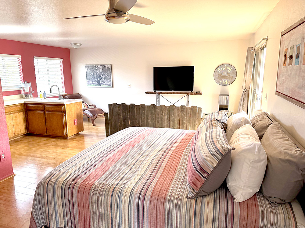 Welcome to Casa Rivera in Los Olivos. The property has been family-owned for more than 50 years and Bryan spent a good part of his youth growing up here, playing in the creek behind the house and wandering around Los Olivos before it developed into the vibrant wine tasting scene it is now. When Mia and Bryan returned to Los Olivos in the Fall of 2021 and decided to convert the apartments into cozy guest suits, they worked together to create much of the unique art and furnishings featured in each space. Since launching Casa Rivera guest suites in June of 2022, more than 200 guests have come to stay and enjoy the serenity of the property and close proximity to all the town has to offer.